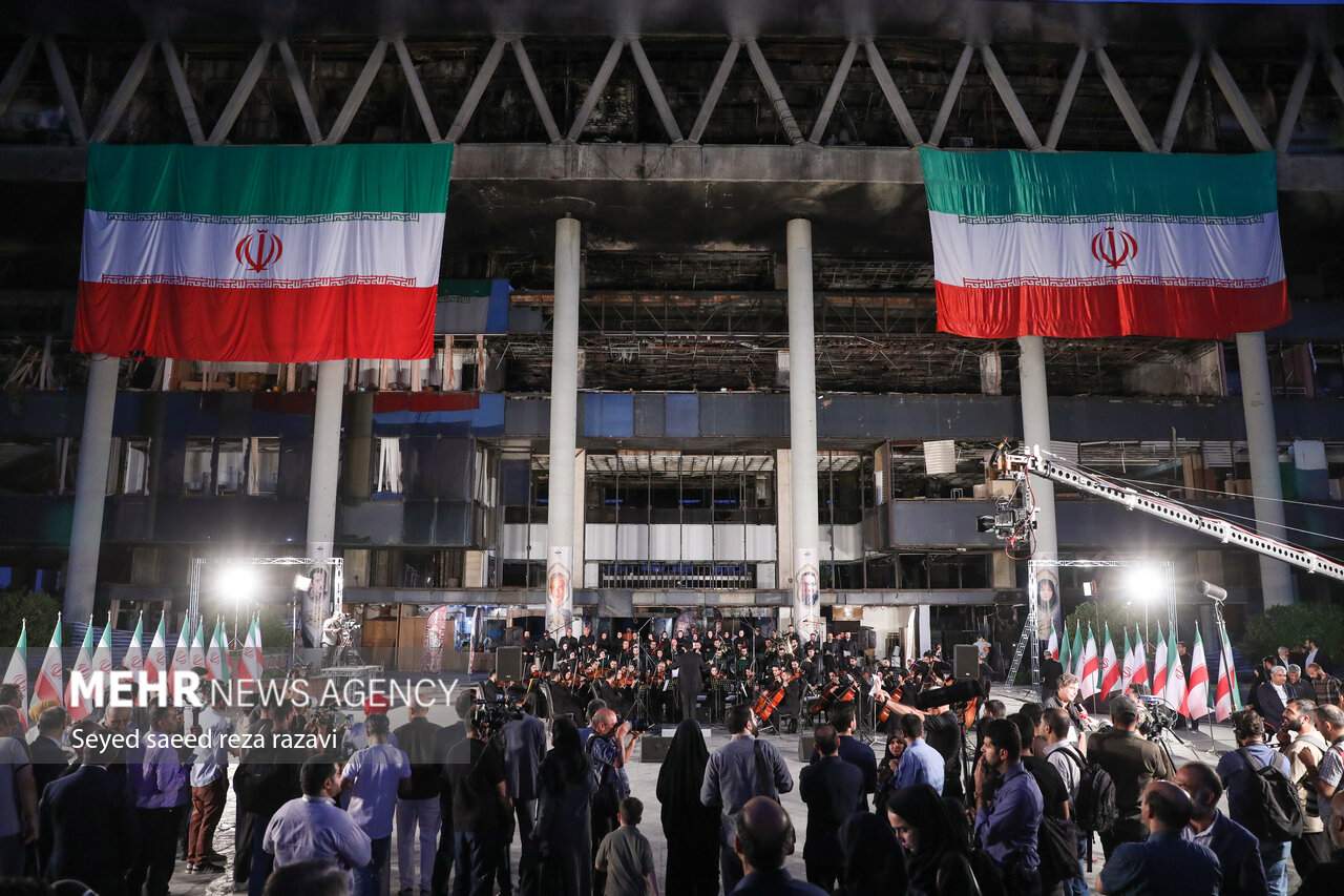 آئین بزرگداشت شهدای رسانه در نبرد با رژیم صهیونیستی شامگاه روز یکشنبه ۲۹ تیر ماه ۱۴۰۴ با حضور فعالان رسانههای جهان در سالن همایشهای بینالمللی صدا و سیما برگزار شد.
