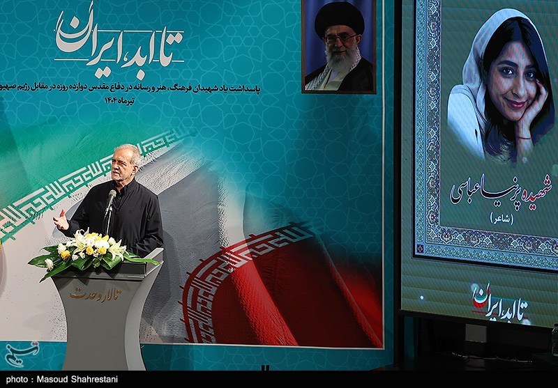 ویژه برنامه (تا ابد، ایران) پاسداشت یاد شهدای فرهنگ، هنر و رسانه و ادای احترام به خانواده های محترم صبورشان صبح روز سه شنبه ۳۱ تیر با حضور مسعود پزشکیان رئیس جمهور در تالار وحدت برگزارشد.