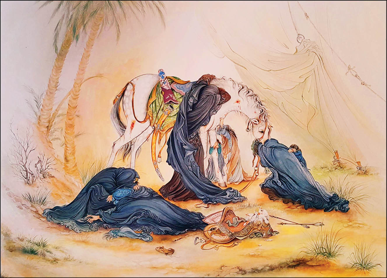 استاد محمود فرشچیان با تلفیقی از هنر نگارگری ایرانی و تکنیک های هنر غرب، سبک جدیدی در هنر ایران به وجود آورد. تابلوهای او تکرار رنگ های لاجوردی و آبی کبود است که هر بار نقشی عجب از میان آن ها پدیدار می شود. استفاده از خطوط منحنی، به کارگیری شگفت رنگ های گرم و بهره گیری از ادبیات غنی و داستان های کتب مقدس ادیان و رویدادهای تاریخی از ویژگی های منحصر به فرد تابلوهای نگارگری اوست. استاد فرشچیان اگر شهره آفاق نباشد، تابلوهای عصر عاشورا و یتیم نوازی علی را همه آفاق می شناسند. نمی توان پا به مراکز فرهنگی و مذهبی گذاشت؛ اما یکی از تابلوهای او را ندید. آثار او با روح دین باوری عجین شده است. آنچه که هر فرد با شنیدن روضه عاشورا در ذهن تداعی می کند، بر تابلوهای استاد فرشچیان تجلی می یابد. تابلوهای شهادت علی اصغر، شام غریبان، عرش بر زمین (گودی قتلگاه) و عصر عاشورا مویدی بر این مطلب است. تابلوهای او هر کدام با داستانی همراه است. اما داستان تابلو ضامن آهو بیش تر بر ذهن می ماند. استاد فرشچیان در این باره گفته است: “پزشکان تشخیص دادند که به مرور زمان عصبهای دستم بهشدت آسیب دیده و تاکید کردند هرگز نباید نقاشی کنم. دلم خیلی شکست؛ تا اینکه به ذهنم رسید از حضرت رضا علیه السلام درخواست کنم تا این بیماری علاج شود. همان لحظه نذر کردم که اگر دستم بهبود یافت، ماجرای ضمانت آهو را به تصویر بکشم.”