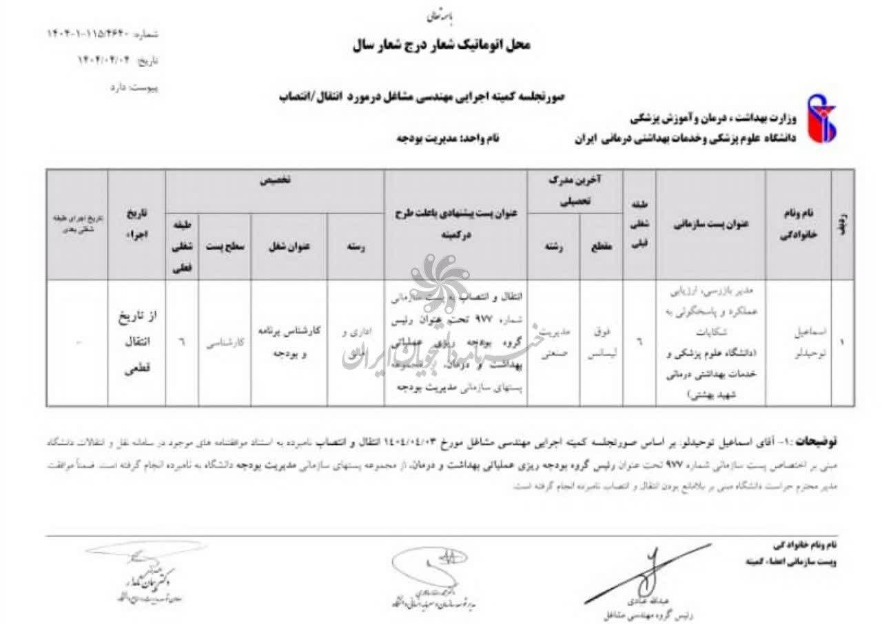 بازهم اسنادی از رانت در دانشگاه علوم پزشکی ایران افشا شد؛
