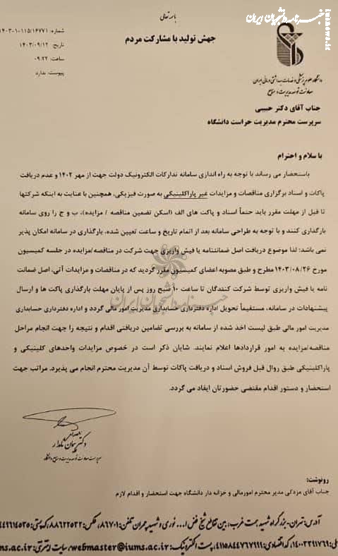 افشای تخلفات مالی کلان در دانشگاه علوم پزشکی ایران/ از قراردادهای هزاران میلیاردی بدون مناقصه تا پرداخت‌های مشکوک +اسناد