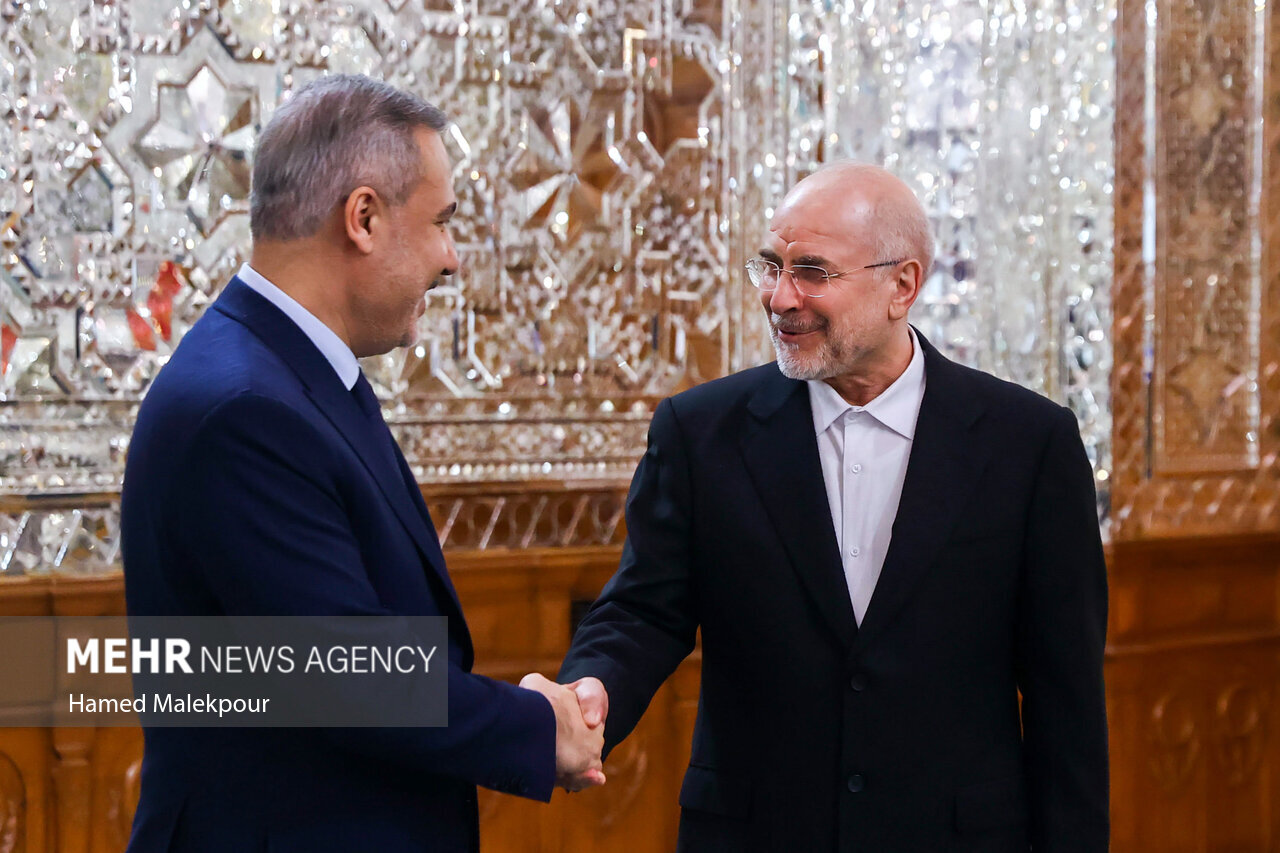 هاکان فیدان وزیر امور خارجه ترکیه عصر روز یکشنبه ۹ آذر ماه با دکتر محمدباقر قالیباف رئیس مجلس شورای اسلامی در تالار آئینه قوه مقننه دیدار و گفتوگو کرد.