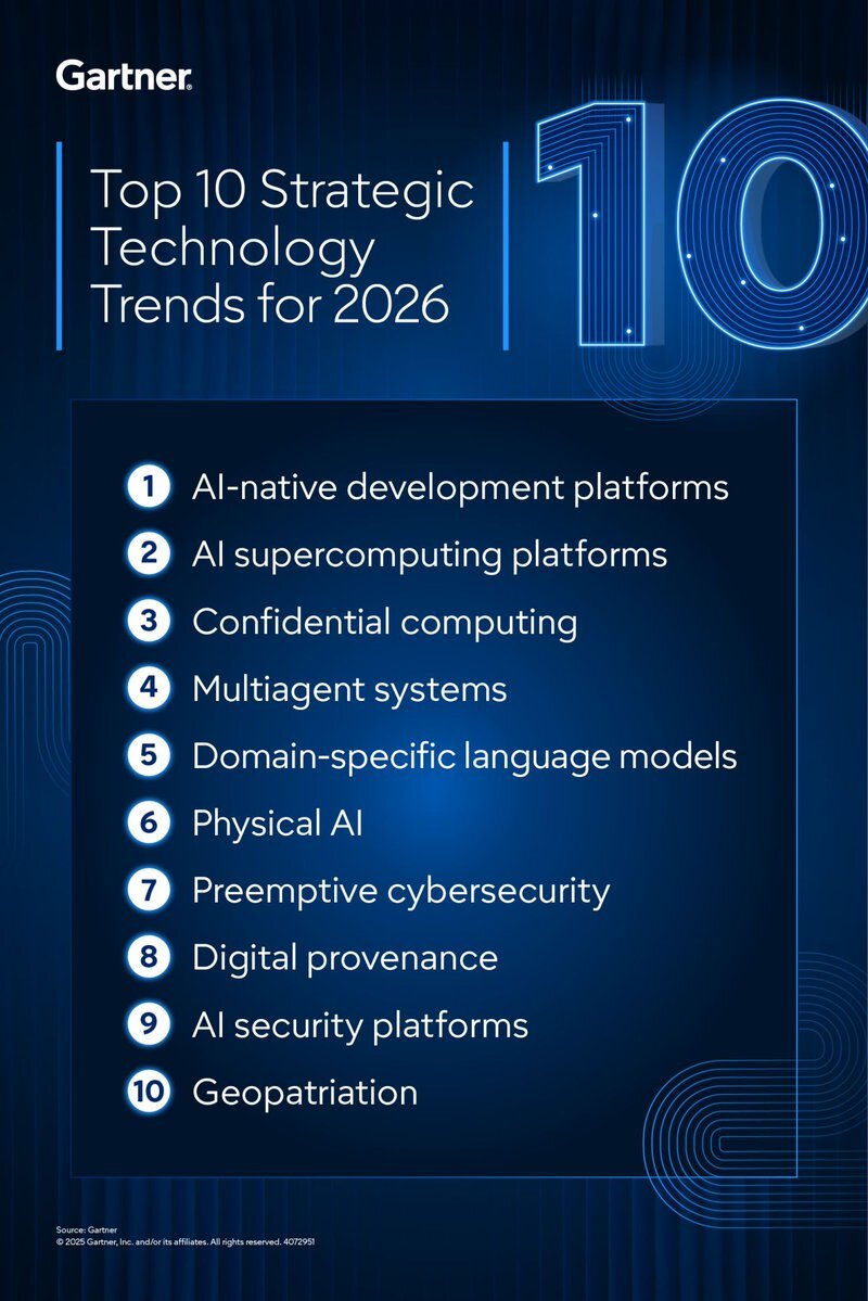 در این میان، گزارش گارتنر با معرفی ده روند راهبردی، تصویری گسترده و چندلایه از نقشه تحول فناوری ارائه و نشان میدهد که چگونه سازمانها باید زیرساختهای هوشمند ایجاد کنند، سامانههای چندعاملی را به کار گیرند و سازوکارهای حکمرانی و امنیت را برای عصر جدید بازطراحی کنند. بر همین اساس، ده روند برتر فناوری مؤسسه گارتنر برای سال ۲۰۲۶ به شرح زیر است.
