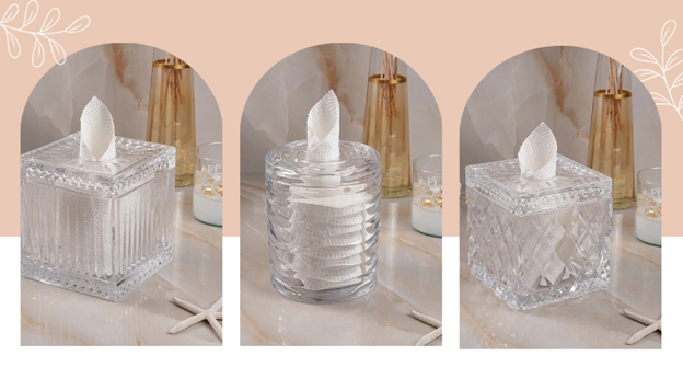 این مدل مدرن و مینیمال، شفاف است و امکان مشاهده میزان باقیمانده دستمالها را فراهم میکند. سبک و قابل جابجایی است و برای دفتر کار یا فضاهای مدرن گزینهای کاربردی و زیبا محسوب میشود.
