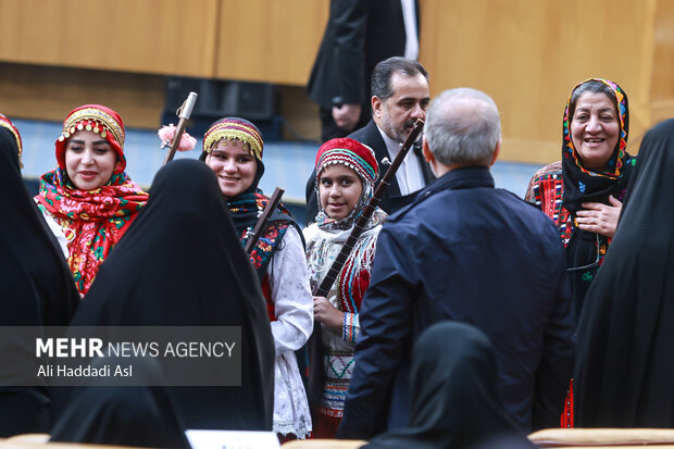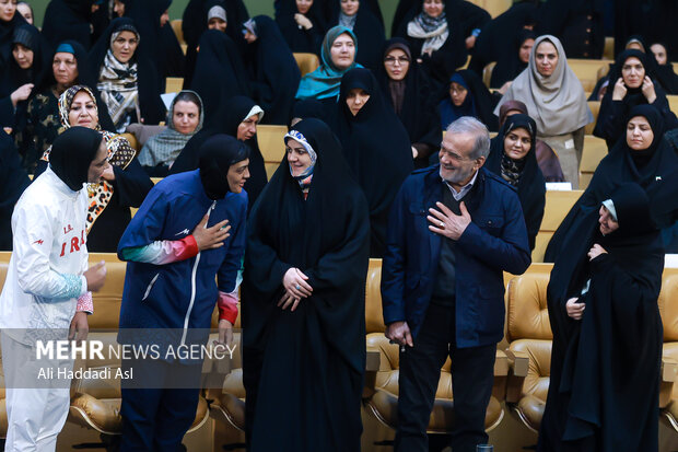 آئین گرامیداشت روز زن صبح روز چهارشنبه ۱۹ آذر ماه با حضور مسعود پزشکیان رئیس جمهور در سالن اجلاس سران برگزار شد.