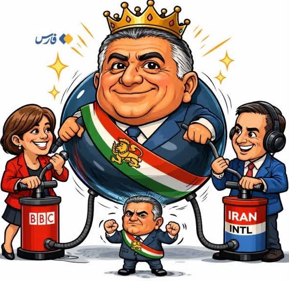 کاریکاتور| بزرگنمایی ۵۰۰ درصدی از پهلوی توسط بی‌بی‌سی و اینترنشنال