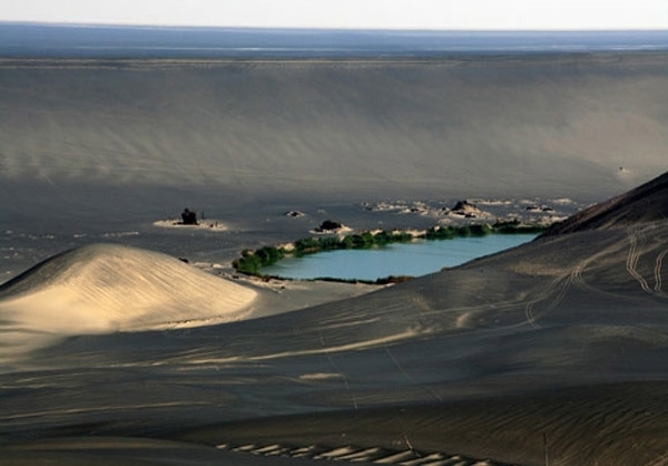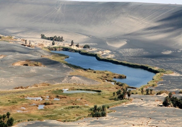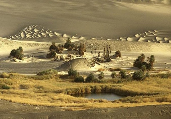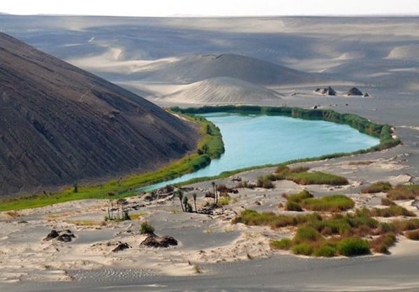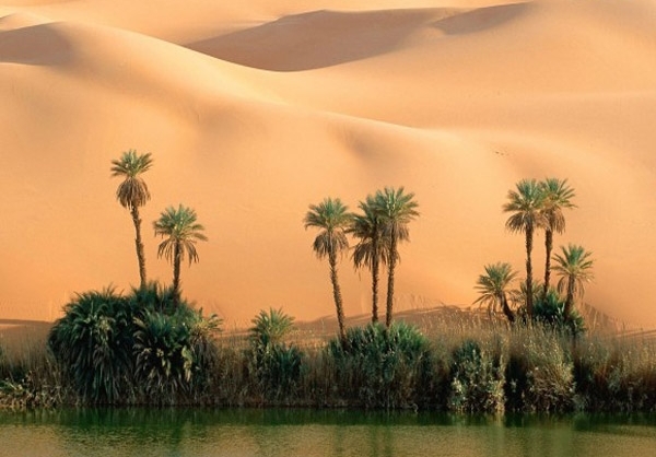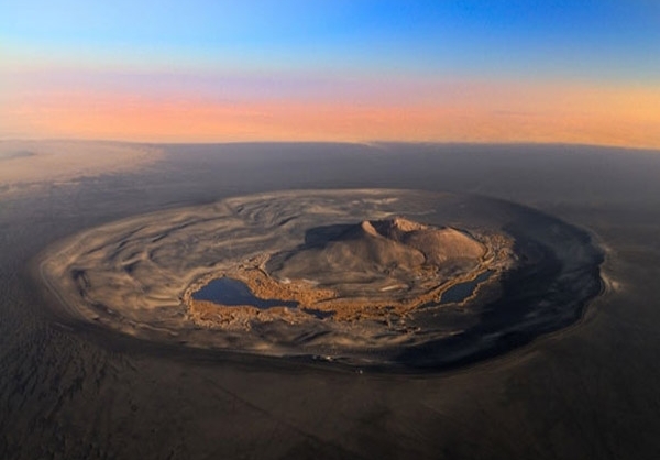 تصویری که مشاهده کردید، کوه «واو الناموس» در لیبی است که نمونهای بینظیر از عجایب جغرافیایی جهان است. قرار گرفتن بقایای مواد مذاب آتشفشانی در کنار سبزی درختان و نخلهای خرما و دریاچهای که در میان شنهای طلایی صحرا قرار گرفته، منطقهای بسیار زیبا به وجود آورده که نظیری برای آن در جهان نمیتوان یافت.